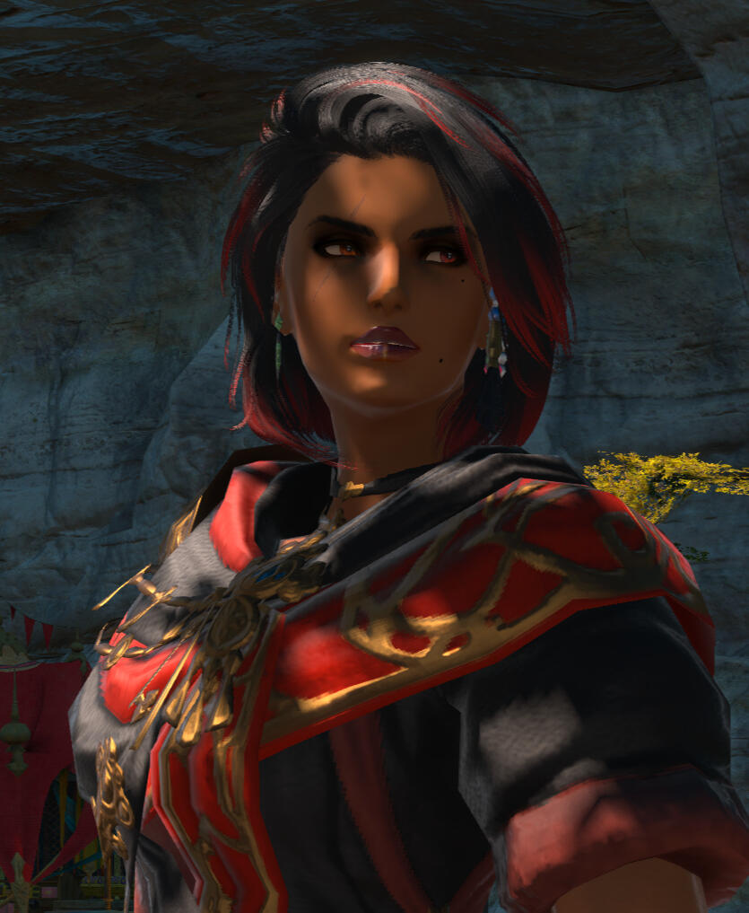 What goes up, must come down?The excitement of ending the Garlean occupation of Doma and Ala Mhigo didn't last nearly as long as she would have wanted. When her friends began to drop like flies and a mysterious voice called out to her from beyond, she didn't quite know what to expect. Being dropped headfirst into another world somehow wasn't on that list - but it was somehow a welcome change of pace, regardless.Plus, she was going to find her friends and bring them home, one way or another.Of course, immediately upon meeting the Crystal Exarch, she was pretty sure she knew exactly who she was speaking to - though that didn't make any sense. Surely G'raha Tia, that she'd last seen locking himself in the Crystal Tower (that Crystal Tower, the one right in front of her) wasn't in an entirely different world.He didn't seem keen to answer her, and claimed he had no idea who she was talking about, but she knew who she was talking to and it really... took a lot of effort not to throw herself at him sobbing. She still remembers the gasping wails that had torn from her throat when those doors closed in the Source.In fighting the Lightwardens, she is the first to realize that something is wrong with her. She can feel it, though she puts on a brave face. She's the hero. She can't be seen crying about the fact that her eyes are a different shade of red after the third warden. The only person who knows that she's upset about it is her shadow that's followed her since she arrived - Ardbert becomes something of a comforting presence the longer that she's in the First.Of course, eventually there is no hiding what is happening to her. Her hair goes gray and her eyes begin to glow and she knows that it's scary to everyone else. When she wakes up after killing Vauthry and catches a glimpse of herself in the mirror, she knows what has happened before Ardbert can explain it - and she starts to wear something to cover her hair and eyes from the citizens of the Crystarium.Her - relationship? - with Emet-Selch of the Ascians also keeps her feeling far more hesitant and upset than she felt like she should be. The more she learns about him, the more she learns of what they want, the more unsure she is that they are doing the right thing. This really culminates when she discovers who she is - or who she was, rather.That hesitation isn't enough to keep her from saving G'raha Tia, though. Her time in the First saw her spending a lot of time with him, and she knew that going home without him wasn't an option. Not even a little bit. He clearly sees himself as nothing more than an eager fan of hers, as someone who will be nothing more than some guy comparatively, but to her - to her he's a friend come back to life, and the man that gave up everything to save her. He is her hero.Bringing her friends home - bringing G'raha home - were the only things that mattered. Everything else (her lost connection to her mother, with her lost red eyes in particular) isn't important.